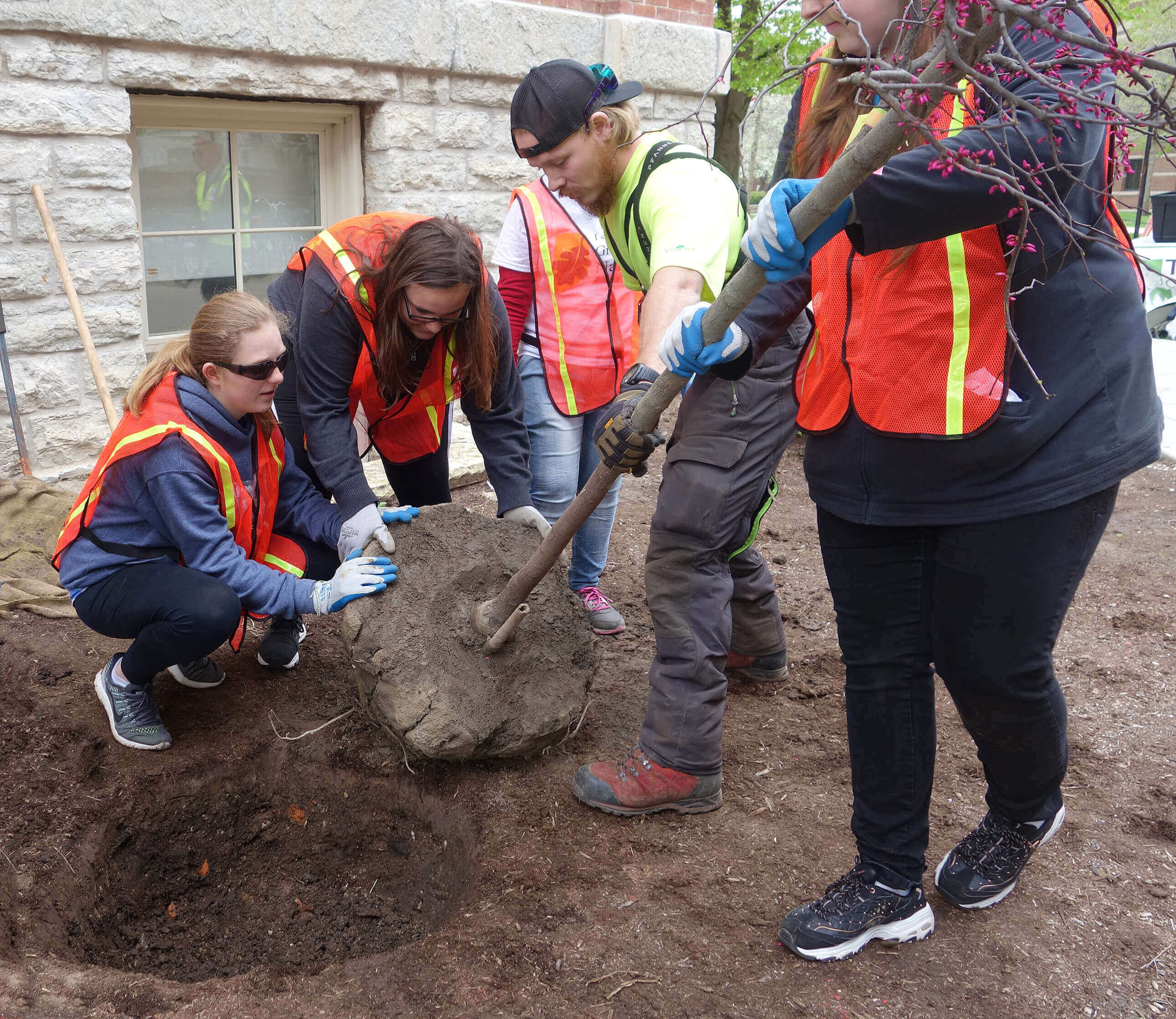 Grounds staff assisted student volunteers with planting several Appalachian Redbud trees during Earth Week. Since Purdue first became a Tree Campus, more than 750 students have volunteered to plant nearly 200 trees on campus during these events. In total, the West Lafayette campus is home to more than 11,000 trees of more than 400 different varieties.