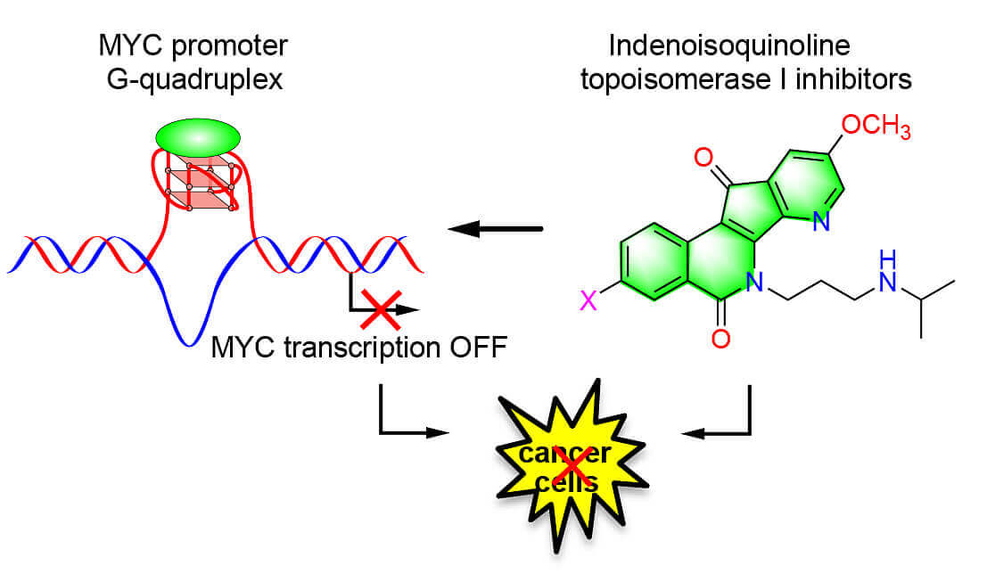 Cushman, whose cancer research work contributed to his election as a fellow of the National Academy of Inventors, said they discovered a novel class of indenoisoquinoline MYC promoter G-quadruplex stabilizers in collaboration with Danzhou Yang. Some of them also inhibit topoisomerase I, an enzyme that facilitates DNA replication and is produced in greater amounts in cancer cells.