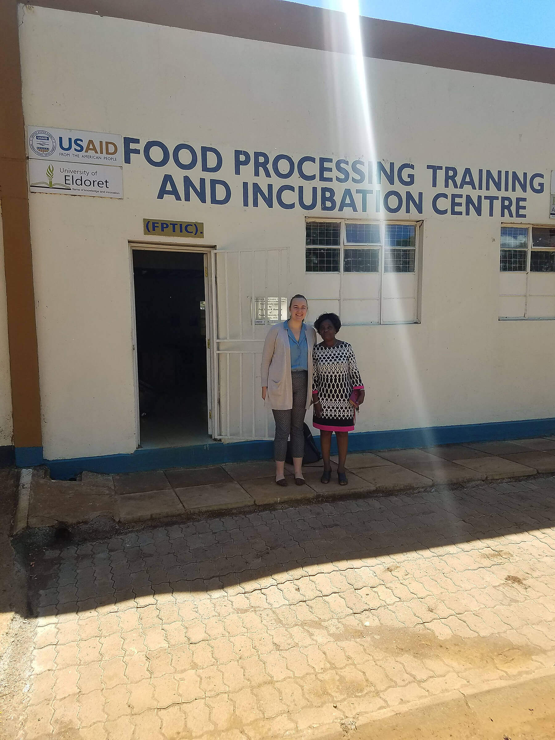 Margaret Hegwood visiting the Food Process Training and Incubation Centre with centre director Violet Mugalavai at the University of Eldoret (Kenya).