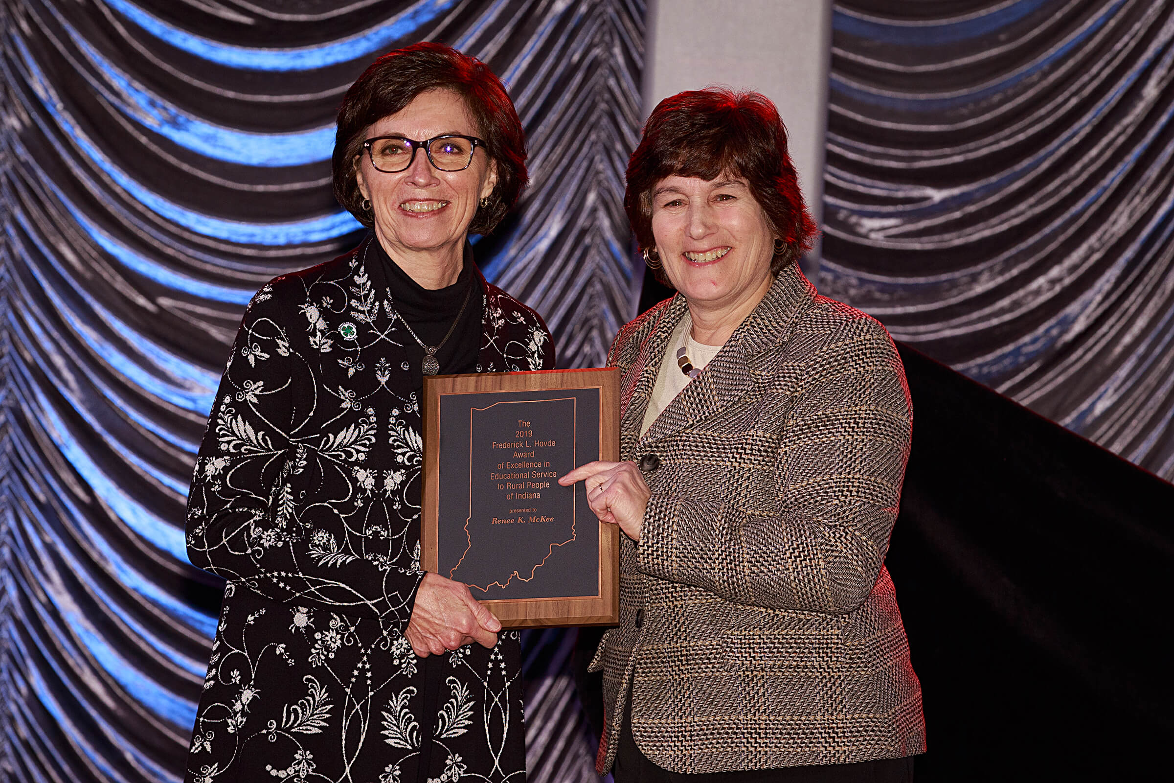 Renee K. McKee, assistant director and 4-H youth development program leader with Purdue Extension, and Roy Ballard, retired Purdue Extension agriculture and natural resources educator in Hancock County, received the 2019 Frederick L. Hovde Award of Excellence in Educational Service to the Rural People of Indiana. The award is presented annually to Purdue faculty or staff who have displayed outstanding educational service to rural Indiana.
