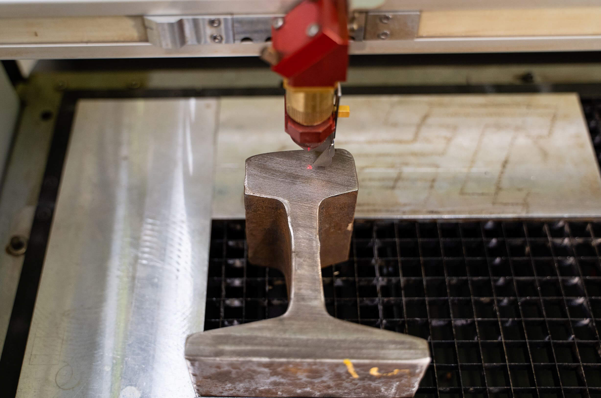 New laser engraving technology a engraves bookends created from antique railway rails. (Nick Wang/Purdue Foundry)
