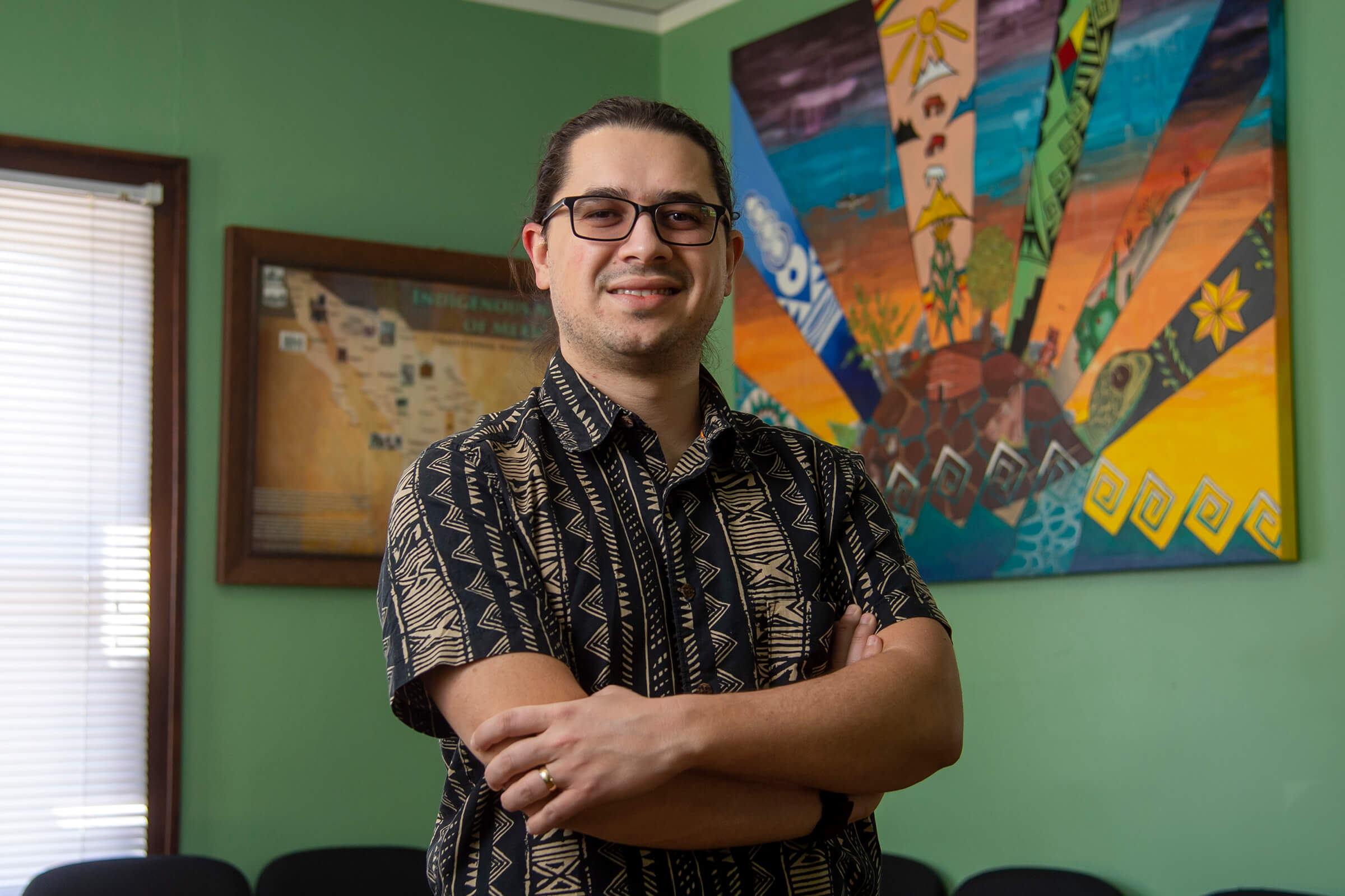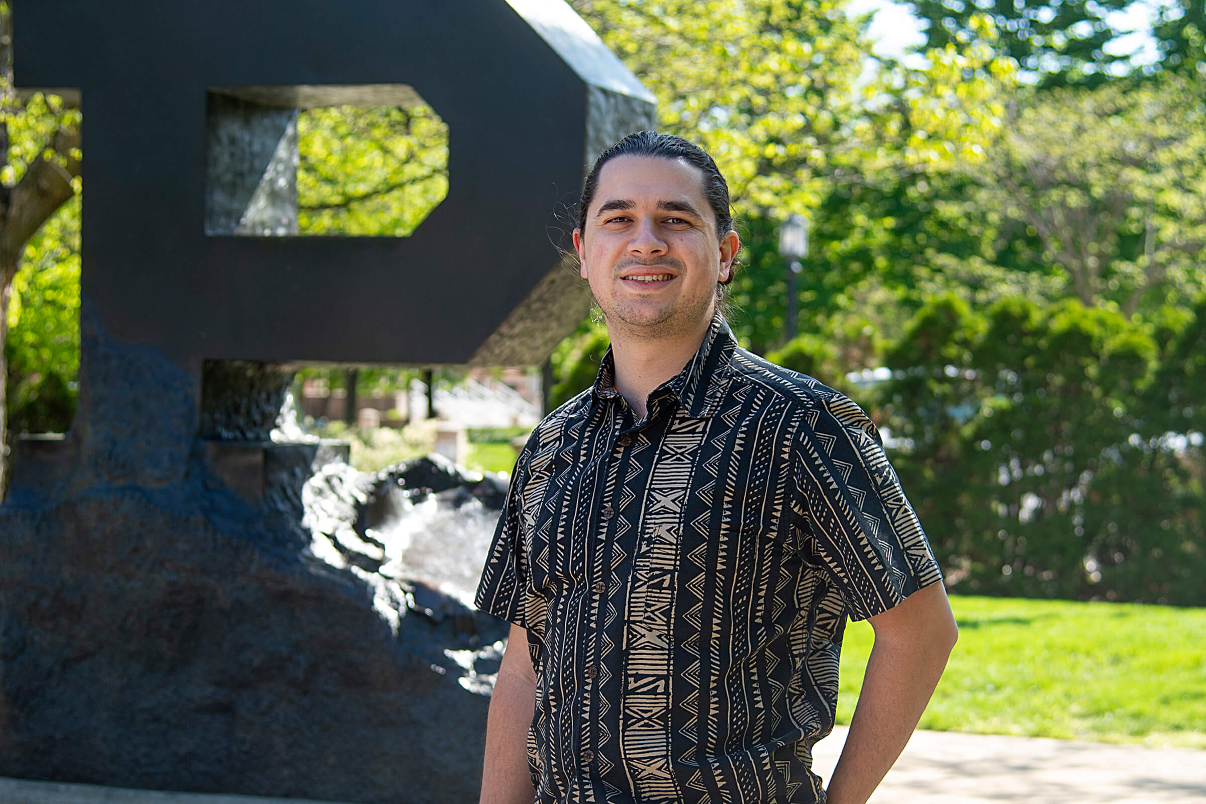 Kyle Dahlin of Hawaii will receive his doctorate in mathematical biology from Purdue University this spring. Dahlin is in the Native American Educational and Cultural Center. (Purdue University Photo/Mark Simons)