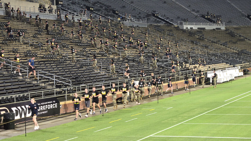 Purdue ROTC cadets, active-duty members, veterans, first responders, and Purdue and Greater Lafayette community members came together Wednesday (Sept. 11) for the 9/11 Memorial Steps of Sacrifice event at Ross-Ade Stadium.
