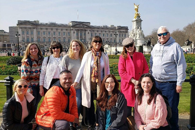 Purdue Global graduate students and faculty in front of Buckingham Palace in London in March 2022. (Purdue Global photo)