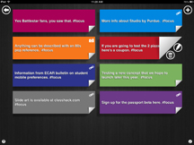 The app, which was developed by Purdue University for its instructors, allows speakers to write Twitter messages, or tweets, and release them at appropriate moments during a talk. The messages may contain links, photos or video clips to provide additional information about the subject.