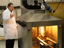Kevin Keener, a Purdue professor of food science, demonstrates his radiant fryer in a campus lab. (Purdue Agricultural Communication file photo/Tom Campbell) |