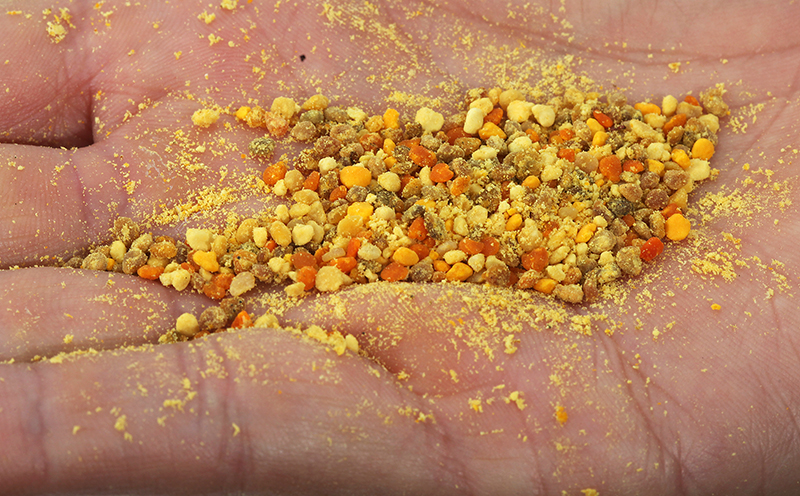 Pollen balls made by Indiana honeybees. Variations in color reflect differences in flower species. (Purdue Agriculture photo/Tom Campbell)