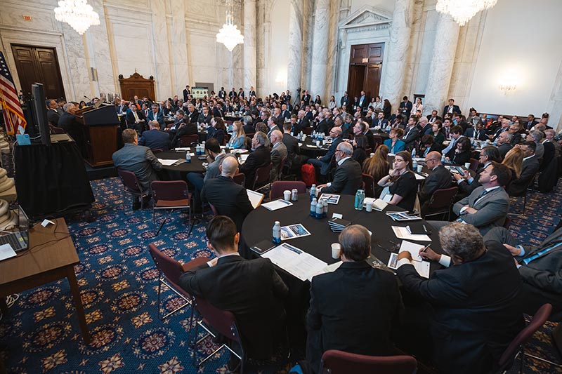 The full-day CHIPS for America: Execute for Success Summit in Washington, D.C., led by Purdue and U.S. Sen. Todd Young of Indiana at the Russell Senate Office Building in Washington, D.C., convened hundreds of attendees representing over 175 entities from over 23 states, and focused on strategies to execute the vision outlined in the recently released CHIPS for America: Vision for Success. It highlighted the implementation of federal investments and future policy actions, and facilitated the creation of government, industry and academic partnerships with a special focus on workforce development and research innovation.