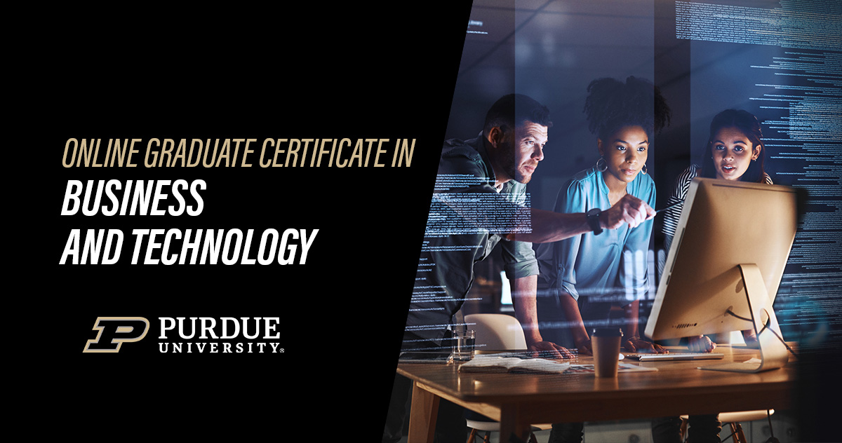 Purdue University is launching a new online Graduate Certificate in Business and Technology. The graduate certificate can be earned in less time than a traditional master’s degree, and it teaches in-demand skills in business strategy and emerging technology, helping to meet a strong demand for business professionals with expertise in technologies like artificial intelligence (AI) and cloud computing.