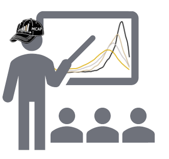 The bottom right circle in the MCAP logo depicts one of MCAP’s core missions: good methodological pedagogy. The instructor is teaching about kernel density plots (which Trent Mize created in Stata using Purdue colors).