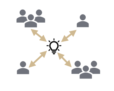 The top middle circle in the MCAP logo shows a productive exchange network, which is the type of network MCAP represents. In productive exchange, multiple people and/or groups are connected through a centralized hub or idea and work together through the hub to produce better outcomes. Productive exchange networks have been found to be the most productive type of network (hence the name!) and to produce the most positive emotion for members.
