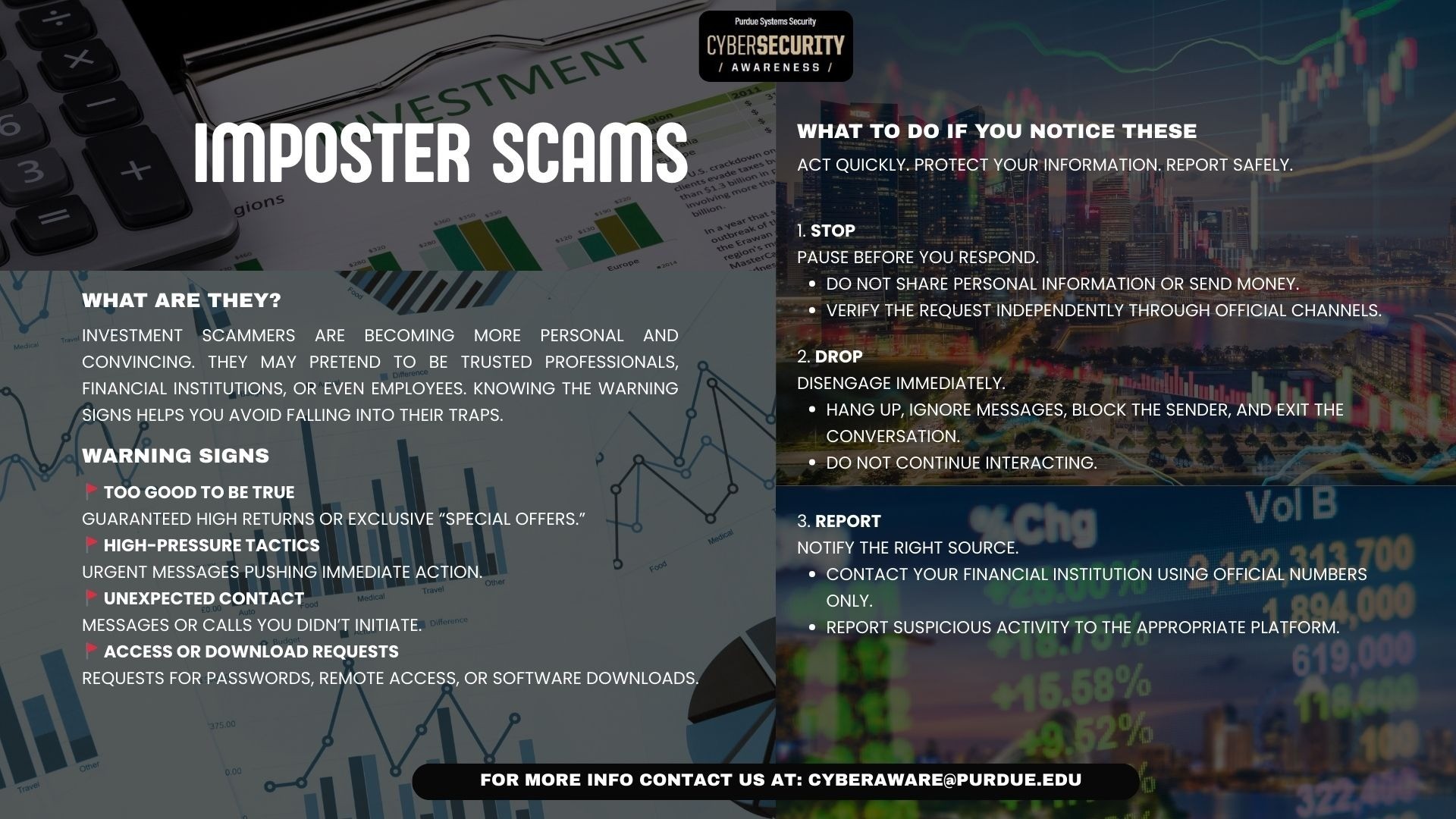 Watch NowFor any cybersecurity awareness related questions or training requests, please email cyberaware@purdue.edu.