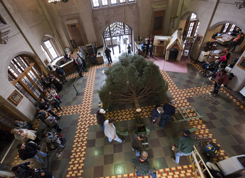 30-foot-tall Christmas tree into Purdue Memorial Union's Great Hall on