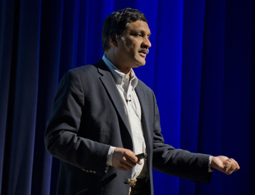 Anant Agarwal, founder and president of edX, an education innovation and research company that specializes in open-source education solutions, presented a lecture titled "Reinventing Education" on Wednesday (March 26) as part of the Presidential Lecture Series. The lecture provided an overview of edX's growth in less than two years and how MOOC technologies are being incorporated into on-campus courses to improve learning outcomes and where MOOC technologies are headed. The presentation also provided some recent research results that suggest ways to improve education online and on campus, and Agarwal discussed how MOOCs might evolve in the future to continue to bring innovation to education both on campus and beyond.