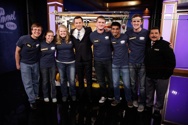 The Purdue Society of Professional Engineers demonstrated its national champion Rube Goldberg machine on Jimmy Kimmel Live on Wednesday (May 14). The Purdue machine goes through 100 clever, sometimes-humorous steps to achieve this year's end task -- zip a zipper. Video of the appearance is here.