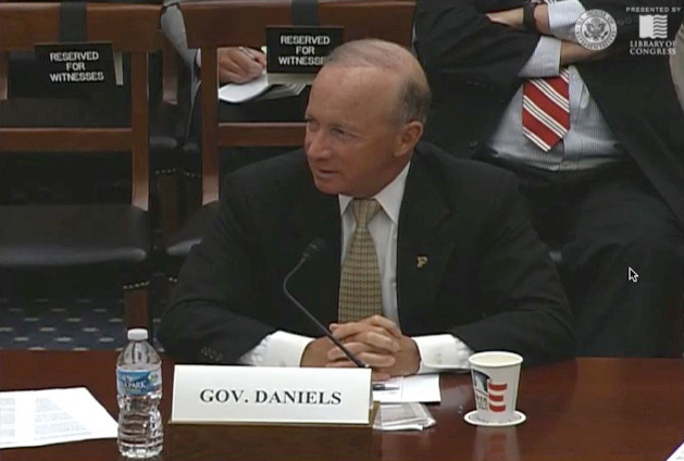 President Mitch Daniels testified about human spaceflight Wednesday (June 25) during a hearing in the U.S. House of Representatives Committee on Science, Space and Technology. Daniels was joined by Jonathan Lunine, director of Cornell University's Center for Radiophysics and Space Research. Daniels and Lunine co-chaired the National Research Council's Committee on Human Spaceflight. The committee issued its report, "Pathways to Exploration: Rationales and Approaches for a U.S. Program of Human Space Exploration," earlier this month. The testimony and information about the report are available online.