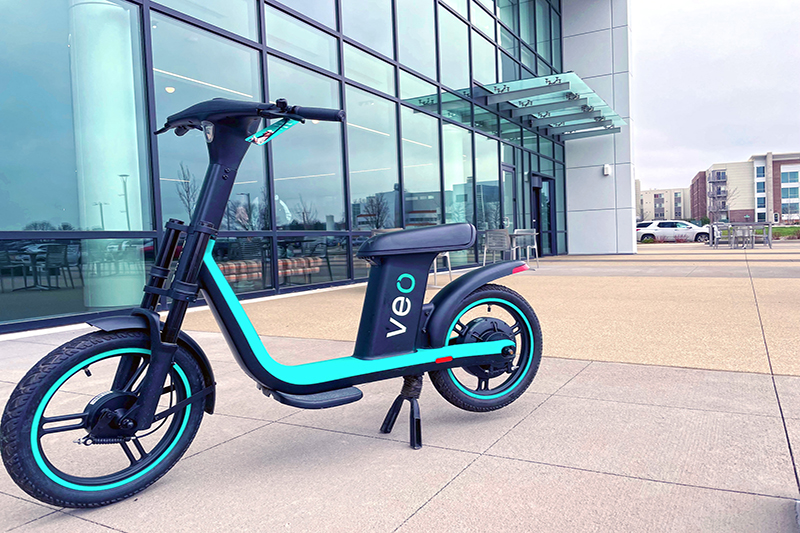 Purdue and Veo officials today (April 20) will celebrate the introduction of a new fleet of shared electric bikes and scooters for the Purdue campus and West Lafayette. Veo co-founders and Purdue alumni Candice Xie and Edwin Tan will join Purdue President Mung Chiang for a formal ribbon-cutting ceremony. The campus community is invited to attend, and a reception will follow.