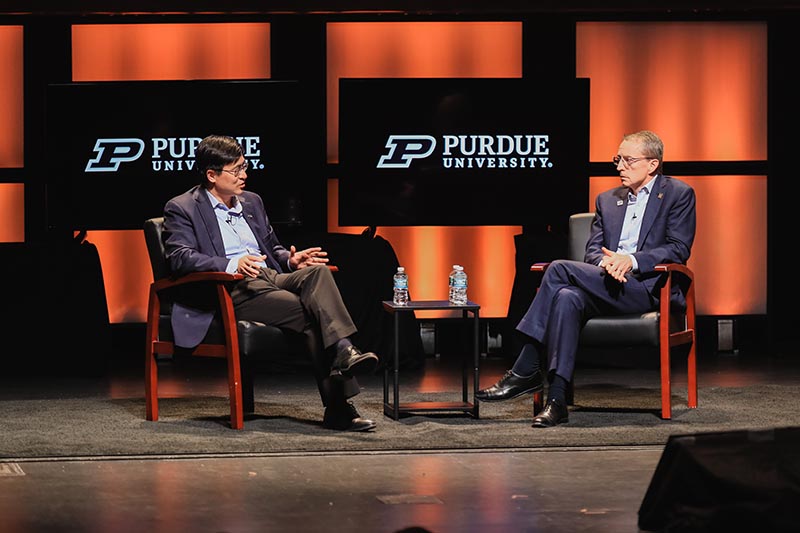 Intel Corp. Chief Executive Officer Patrick Gelsinger, who has over four decades of technology leadership and experience in driving innovation, joined President Mung Chiang as part of the Presidential Lecture Series. The public event, titled “Welcome to the Siliconomy: Semiconductors and the Supply Chain,” took place Oct. 17 in Stewart Center’s Loeb Playhouse. A video of the event is now available.