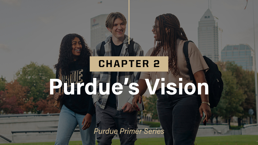 Purdue University’s vision is clear: to build a better world, together. Every giant leap brings us closer to a future of innovation, collaboration and excellence. Watch the full interactive video to see how we’re turning vision into reality. This is the second chapter of five in our Purdue Primer video series — follow along as the story unfolds.