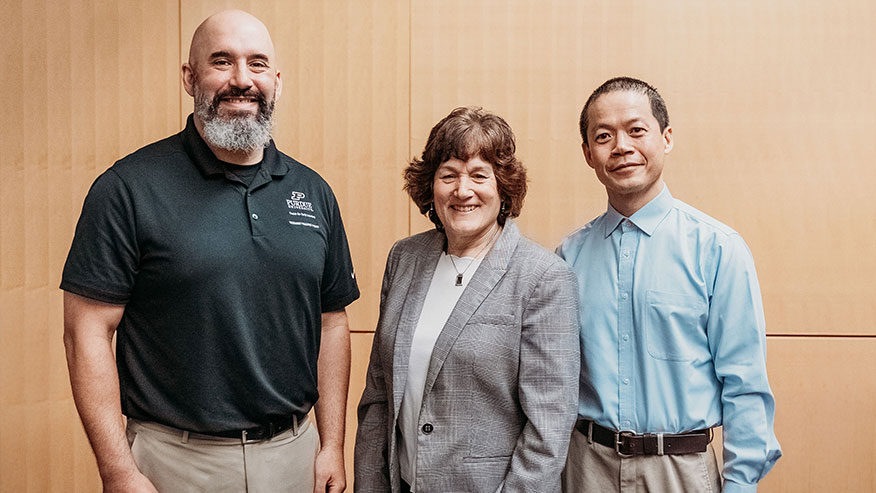 Each year Karen Plaut, executive vice president for research, hosts this event, which features lectures by winners of the Herbert Newby McCoy Award, Arden L. Bement Jr. Award and Lu Ann Aday Award, Purdue’s three most prestigious research awards.