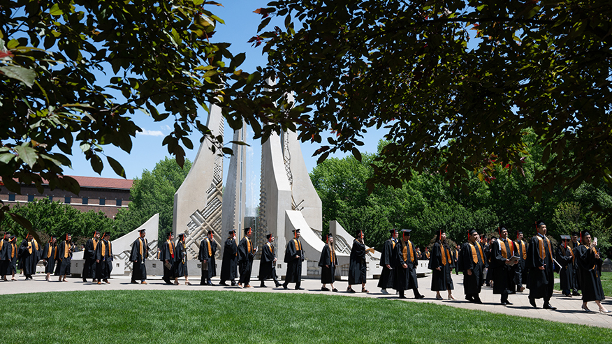 Purdue completed its annual rite of spring with 10 commencement ceremonies held Thursday through Sunday (May 15-18) at Elliott Hall of Music. For the first time, Purdue’s main campus conferred more than 10,000 degrees in a single commencement. The spring 2025 class included 7,997 undergraduates, 2,167 graduate students, 220 students from professional programs and 85 students from Purdue Polytechnic Institute’s statewide programs who were eligible to participate in the ceremonies.