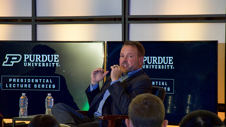 A Purdue alum and CEO of Wabash, Brent Yeagy joined President Mung Chiang Nov. 6 to headline last week’s Presidential Lecture Series. In his event titled “From Lab to Market: Unlocking Innovation Through Partnership,” he had a conversation on how industry and higher education can collectively advance innovation in manufacturing.