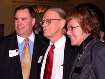 Attending the dinner in the East and West Faculty Lounge in the Purdue Memorial Union were about 75 current and emeritus Krannert faculty, spouses and Smith's former Krannert colleagues who have gone on to other universities. Smith was welcomed by University President Martin C. Jischke. "You have extended a great honor to Purdue through your talents, your accomplishments and your association with this university," Jischke said. "We are very proud of all that you have done and look forward to all that is yet to come." Richard A. Cosier, Krannert School dean and Leeds Professor of Management, spoke of the Krannert School's pride in Smith's achievement and introduced Jisckhe, Provost Sally Frost Mason and George Horwich, professor of economics emeritus, who was Smith's colleague when he was at Purdue. Horwich and Tim Cason, a professor of economics at the Krannert School, who was Smith's student and then worked with him when he spent part of the 2002 school year at Purdue, made comments on Smith's early and late career. Smith spoke about starting his career at the Krannert School and the support and freedom he received for what was uncharted research territory in the '50s and '60s. He also spoke about his colleagues from the period. A seventh-floor Krannert computer laboratory, formerly known as KRAN 701, is now the Vernon L. Smith Experimental Economics Laboratory. Cason presented Smith with a plaque commemorating the lab's naming. Smith, known as the father of experimental economics, began his academic career at Purdue's Krannert School of Management in 1955. He came back to Purdue and spent part of the 2000 school year on the West Lafayette campus. He is currently a professor at George Mason University. Horwich said Smith began his experiments in economics with his students when he came to Purdue in 1955. Borrowing techniques from psychology laboratory experiments, Smith created virtual markets by designating half his class as buyers and half as sellers of fictitious goods. Smith gave the buyers and sellers different ranges of prices and had the students interact freely and negotiate trades until price and quantity achieved equilibrium, or in economic terms, "made a market." "This was the first time anyone had demonstrated experimentally how markets form," Horwich said. "It was a form of empirical verification of economic theory." Smith wanted to prove that economic theories can be tested in laboratory-type settings for two reasons: to move economics closer to the methodology and replication under controlled circumstances of the natural sciences, and to test economic theories and hypotheses even the seemingly indisputable, bedrock theory of supply and demand before introducing them to real markets. After his initial work, Smith began experimenting with more complex markets, Horwich said. "For example, Vernon designed experiments to test market monopolies and markets where there were only two or three different sellers and many buyers," Horwich said. "His work killed the old myth that economics can't be simulated in a laboratory. All of the experiments demonstrated that, left to their own, markets will reach an equilibrium, except under exceptional circumstances. Thanks to Vernon's experiments, those circumstances now can be identified. "What Vernon has accomplished is an economic revolution. He took the theory of market behavior out of the ivory tower and showed us how to simulate what is going on in the real world." As a result, Horwich said, Smith's experiments broadened the empirical bases of economic knowledge that policy-makers can draw upon. "What Vernon has given us is a mechanism, a machine to answer so many important economic questions," he said. At the University of Arizona in 1985, Smith established and became research director of the university's Economic Science Laboratory. Taking advantage of computer technology, he and his associates continued to perform more and more sophisticated experiments to simulate increasingly complex markets. Cason said: "Vernon has made many of the most important contributions in experimental economics, and he continues to work at the forefront of the field. He is using the laboratory to design new markets where markets never existed. "For example, much of Vernon's laboratory work in the last decade has focused on designing better markets for trading electricity and gas." Horwich said, "The young Smith was a precursor to the computer technological revolution a couple of decades later." One of the most accomplished of those who have followed Smith in experimental economics is another former Purdue colleague, Charles R. Plott. Plott, now the Edward S. Harkness professor of economics and political science at the California Institute of Technology, was among the guests at Smith's Krannert event. "Vernon was the founder of experimental economics, and Charlie was a leading disciple," Horwich said. Smith, a 75-year-old native of Wichita, Kan., completed his undergraduate degree in electrical engineering at the California Institute of Technology and master's degree in economics at the University of Kansas before taking up his doctoral studies at Harvard. Horwich described Smith as "warm, friendly and unassuming, always dressed casually," usually in Western style with cowboy boots and turquoise. Smith stayed at Purdue for 12 years and attained the rank of full professor. He subsequently taught at Brown University, the University of Massachusetts, the California Institute of Technology and the University of Arizona. Purdue awarded Smith an honorary doctorate in management in 1989. He said at the time: "What made Purdue so powerful an experience for me was that I really was free to do my own thing. It wasn't just the administration, but also my colleagues who didn't for a moment think that, because I wanted to do experiments, my opportunities or resources should be limited." Smith shared the 2002 Nobel Prize in economic sciences with Daniel Kahneman. Today,