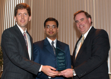 The team was made up of mechanical engineering doctoral students Dan Schlitz and Vishal Singhal. They have been working on the plan since last fall and credited a business plan workshop series funded by the Lilly Endowment at Purdue's Burton D. Morgan Center for Entrepreneurship as integral to their success. Schlitz said he and his partner were "surprised and pleased to win the competition. Honestly, the most beneficial thing we received was the advice of the judges." A panel of nine venture capitalist judges tapped Thorrn Micro Technologies as the winner. Don Feddersen, general partner of Bessemer Venture Partners in Wellesley Hills, Mass., and one of the judges, told the winning team: "I'll introduce you to the Intel venture capitalist organization tomorrow. You never know what competition is out there. What you want to do in 18 months, you need to do in six or eight months. I'd like to see you bring it home." Richard A. Cosier, Krannert School dean and director of the Center for Entrepreneurship, presented the awards. "There were no losers here today," Cosier said. "We heard 10 excellent presentations that were the best of more than 90 plans that were originally submitted." In addition to the $100,000 in prizes, Indianapolis law firm Ice Miller contributed $10,000 in legal services to Thorrn Micro Technologies. Second place and $20,000 went to Geneformatica with a plan to market a database of human genes for biological research and development of pharmaceutical products. Geneformatica also won a $5,000 award for the team with the best social component. "The social component prize is new this year," said Shailendra Mehta, director of the Krannert Entrepreneurial Initiative. "We want to reward plans that make a contribution to society, in addition to entrepreneurism and business." The other awards for the top teams were third prize, $10,000; fourth prize, $7,000; and fifth prize, $5,000. Two other teams won $2,000 and $1,000 for their five-minute "fast pitches" to the judges. CONTACT: Cosier, (765) 494-4366, rcosier@mgmt.purdue.edu; Schlitz, (765) 494-8610, dschlitz@purdue.edu; Singhal, (765) 495-6906, singhalv@purdue.edu; Mehta, (765) 494-4366, mehta@mgmt.purdue.edu. Writer: Mike Lillich, (765) 494-2077, mlillich@purdue.edu Related release: