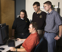 PHOTO CAPTION:br> Four Purdue University School of Technology students from last year's High-Tech Job Fair for Indiana Companies all were hired by Cornerstone Controls, an Indianapolis advanced-manufacturing company. The students are (from left) Christopher Noble, Melissa Beyer, Benjamin Creasy and Alan Bledsoe. This year's high-tech job fair takes place on Oct. 29 in the Purdue Memorial Union ballrooms. (Purdue Marketing Communications photo/Mark Simons)