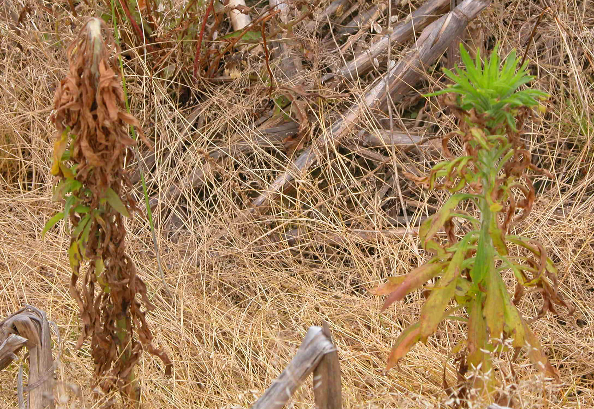 For the past three years marestail populations east of the Mississippi River have exhibited resistance to glyphosate, the active ingredient in many popular herbicides, including Roundup. In 2002 the first glyphosate-resistant marestail in Indiana was discovered in Jackson County. It has since spread to Bartholomew, Clark, Jefferson and Jennings counties. Now that glyphosate-tolerant marestail has entered the Hoosier state, row crop producers especially those who grow soybeans in a no-till system should be on the lookout for populations that are unfazed by the herbicide, said Jeff Barnes, Purdue University weed science research associate. Farmers who suspect their fields harbor glyphosate-resistant marestail can come closer to confirmation by examining the weed control history of their crop acres and noting which weeds are surviving herbicide applications, Barnes said. "You might look for fields that have a very high population of marestail growing above the soybean canopy and not very many other weeds," Barnes said. "That would be one indication you've controlled all of your weeds, but you're not controlling marestail. It also would rule out the potential that you just had a bad herbicide application or something happened when you were mixing the herbicide. "In that case you'd be either in a situation where the horseweed was too large, which could have been a problem, or it does have resistance." Marestail also is known as horseweed. A stronger sign that glyphosate resistance has occurred is the presence of healthy marestail in a field full of dead weeds. "Many times what you'll see in fields that have resistance is a live plant and a dead plant right beside each other," Barnes said. "You can have 10 dead plants and one live plant in the same area, or vice versa. They were probably all about the same size when they were sprayed, but for whatever reason, whether it is resistance or just plant stress, one plant died and one didn't. "If you've been in continuous soybeans and continuous glyphosate for your burndown and your in-crop weed control, then you do have more potential for resistance than if you've been in a rotation system and have been using other herbicides." Soybean growers rely heavily on glyphosate. This past spring, the U.S. Department of Agriculture estimated that 83 percent of the nation's soybean acres would be planted to Roundup-tolerant varieties. In Indiana, the percentage of soybean acres expected to be planted to Roundup Ready seed was even higher 91 percent. Marestail presents a greater threat to soybeans than corn for other reasons, as well. The weed can become established before soybean plants emerge. The weed grows taller than soybeans, thus competing for sunlight and other plant nutrients. Left undisturbed, marestail can reach a height of 7 feet. The weed also creates problems at harvest. Marestail plant tissue can get mixed in with soybeans in the combine, reducing the crop's market value. Marestail is not as significant a problem in corn because corn usually is planted earlier than soybeans and grows taller than the weed. "In 1995 marestail was considered one of the worst weeds in Indiana and, particularly, in no-till fields," Barnes said. "In no-till when you're trying to plant you want a nice, clean seedbed. Those weeds that have already emerged before you plant your crop are going to be very competitive and will have the potential to decrease your yields." Glyphosate-resistant marestail populations are expanding, in part, because the weed travels by wind, Barnes said. "Marestail can spread very quickly because it's a wind-blown seed," he said. "Some research has shown the seed can go up to a half mile away in a fairly low wind, so it has the potential to spread over a wide distance. It also has very rapid growth. As temperatures begin to warm and you start getting ready to plant your crop or already have a crop in the field, the rapid growth of the marestail, in relation to the crop, gives it a competitive advantage." Farmers can continue using glyphosate-based herbicides to control resistant marestail if they also use FirstRate and Classic brand products, Barnes said. FirstRate and Classic can be applied prior to or after soybean planting. With corn, 2,4-D and dicamba have proved to be effective in knocking out marestail, Barnes said. Marestail is among more than 240 weeds worldwide that have developed resistance to herbicides. Herbicide-resistant populations of jimsonweed, pigweed, lambsquarter and giant and common ragweed are present in Indiana. More information about glyphosate-resistant marestail and control options is available in the paper "Identifying Glyphosate-Resistant Marestail/Horseweed in the Field," by Barnes and Purdue weed scientists Bill Johnson and Glenn Nice. The paper can be downloaded online at https://www.btny.purdue.edu/weedscience/2003/Articles/horsetail7-23-03.pdf or by logging onto the Purdue Extension Weed Science Web page. Writer: Steve Leer, (765) 494-8415, sleer@purdue.edu Source: Jeff Barnes, (765) 494-4645, jbarnes@purdue.edu Ag Communications: (765) 494-2722; Beth Forbes, bforbes@aes.purdue.edu; https://www.agriculture.purdue.edu/AgComm/public/agnews/ Related Web site: