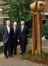 The dedication of the nine-foot sculpture will take place at 4:30 p.m. on the east side of the Steven C. Beering Hall of Liberal Arts and Education. Beering, Purdue President Martin C. Jischke, and internationally known Spanish artist Faustino Aizkorbe (pronounced eye-SKOR-bay), who created and donated the sculpture, will be in attendance. Jischke said Aizkorbe's second sculpture reflects the university community's admiration for President Beering and his many accomplishments. "From the beautification of campus to the internationalization of Purdue, President Beering has left an enduring legacy," Jischke said. "This artistic interpretation is a fine tribute to the spirit of Dr. Beering's efforts that touched so many, for now and for the future." The sculpture features four iron railroad tracks, which are suspended from a tripod with a bronze torso at the top. A Maltese cross, cut out of the torso, lies beneath the rails on the ground. The railroad tracks reflect the Purdue Boilermakers' ties to and support of transportation, advanced communication and spirit of progress. The torso represents Beering and his role in transferring this spirit to the students of Purdue. The cross on the torso symbolizes that the president emeritus was at the heart of this effort, working with self-sacrifice and patience. The cut-out section of cross sits at the base of the railroad tracks to symbolize the foundation and authority provided to Beering by the university. "In this manner, we have Mr. Beering and Purdue united by communication and the strength that each contributes, which, in turn, propels both to move forward," Aizkorbe said. Aizkorbe also fashioned the 40-foot bronze sculpture "Transformation," which is located in the heart of the Agricultural Mall at the intersection of Marsteller and Wood streets. "Transformation," Aizkorbe's first commissioned work in the United States, was a gift to the university from the Class of 1952. Aizkorbe, whose work is displayed in Europe, China and Japan, as well as the United States, is well known for his large-scale abstract sculptures made from marble, steel, bronze, stone and wood. His polished surfaces, curved lines and circles combine to create self-standing forms, resembling and suggesting a connection to the pieces of a machine. Born in 1948 in Navarra, Spain, Aizkorbe lives and works in Pamplona, Spain. Beering was named Purdue's ninth president in 1983 after serving as dean of the Indiana University School of Medicine and director of the IU Medical Center. He retired in 2000 and continues to serve as chairman of the Purdue Research Foundation. A summa cum laude graduate of the University of Pittsburgh, he subsequently graduated from the Pitt School of Medicine and spent more than 12 years in the U.S. Air Force Medical Corps. During his military career, he served as an adviser to the U.S. surgeon general in internal medicine and was a medical consultant on the U.S. space program's early attempts to put humans in orbit. Beering's administration at Purdue emphasized undergraduate teaching and faculty recognition through the creation and funding of special professorships. Under his tenure, the number of distinguished and named professorships grew from 21 in 1983 to more than 60. Beering also led major building and beautification efforts on the university's campuses. Among the construction projects completed under his administration in West Lafayette include the Steven C. Beering Hall of Liberal Arts and Education; a $32 million power plant expansion; Hillenbrand Hall, a student residence; and major additions to the engineering, veterinary medicine and athletic complexes. A new food science and biotechnology complex and a golf course renovation also were completed during his tenure. In addition, Beering was instrumental in transforming the campus landscape and skyline with the bell tower and creation of several outdoor malls. During his administration, annual support for sponsored research grew to more than $130 million. In 1989, Beering launched the Vision 21 campaign, a five-year, private fund-raising effort that raised more than $330 million, surpassing its goal by more than $80 million. Beering has held senior positions with numerous national and state committees, boards of directors and educational policy-making groups. He is a past president of the Association of American Universities and was co-chairman of the NCAA Presidents' Commission Subcommittee on Gender Equity. He continues to serve as a member of the National Academy of Science/Institute of Medicine and is a fellow of the American College of Physicians and the Royal Society of Medicine. Writer: Marydell Forbes (765) 496-7704, mforbes@purdue.edu Sources: Steven C. Beering, (765) 496-7555, scb@purdue.edu Martin C. Jischke, (765) 494-9708 John Collier, senior landscape architect, (765) 494-6882, jdcollier@purdue.edu Related Web site: PHOTO CAPTION: