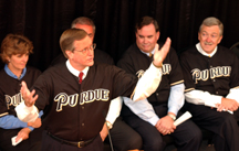 WEST LAFAYETTE, Ind. Jerry S. Rawls Hall, which was dedicated with a baseball-themed event today (Thursday, 10/2), will almost double the size of the playing field and change the rules of the game for Purdue's Krannert School of Management students.