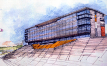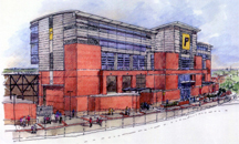 This is a view from the northwest of the four-story pavilion that will rise on the west side of Ross-Ade Stadium. The stadium club and working press area will be named for Richard Shively, a member of the Class of 1941 who contributed $2 million to intercollegiate athletics recently, bringing his lifetime support of athletics to $5 million. A publication-quality photograph is available at the News Service Web site and at the ftp site. Photo ID: Ross.Ade.Pavilion