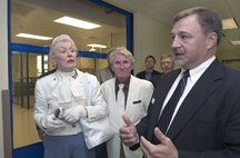 The $7 million building expansion could lead to as many as 200 new jobs. The expansion, which quadruples the company's West Lafayette facility, includes new clean-room manufacturing space where Cook Biotech transforms a portion of porcine (pig) small intestine into strong, sterile, pliable sheets that work as a scaffold to facilitate the growth of new tissue. The tissue-engineering technology was discovered at Purdue University and subsequently licensed, developed and manufactured by the company. Cook Biotech has received 13 clearances from the Food and Drug Administration for medical product applications in the areas of wound care, burn management, hernia repair, urological surgery and general surgery. "We are gratified by the strong interest that physicians have expressed in our medical products, and we now have a state-of-the-art facility that will be capable of supporting the company's growth," said Mark Bleyer, president of Cook Biotech. Cook's expansion and commitment to stay in the community is supported by West Lafayette Mayor Jan Mills. "The city of West Lafayette is pleased to be able to provide the tax incentives and quality of life amenities that encourage companies like Cook Biotech to remain and expand in our community," Mills said. Joseph B. Hornett, senior vice president and treasurer of the Purdue Research Foundation, the entity that administers the research park, said, "Cook Biotech's expanded facility is a welcome addition to a growing life sciences cluster at the Purdue Research Park. This facility is a testament to the results that occur when Purdue's technological discoveries are developed by industry experts into companies that produce high-paying, high-skill jobs for Indiana." The expansion is located at located at 1425 Innovation Place, directly behind the company's original facility in the Purdue Research Park. The park encompasses 591 acres in West Lafayette and is home to the largest university-affiliated, state-of-the-art business incubator complex in the nation. Within the park, 104 businesses, of which 58 are high-tech, employ more than 2,200 people. The park's life sciences cluster also includes Bioanalytical Systems Inc., Endocyte Inc., SSCI Inc., MED Institute and Akina Inc. Cook Biotech, a Cook company with shared ownership by Cook Group Inc., Purdue Research Foundation and Clarian Health Partners, is actively developing extracellular matrix (ECM) technology and biological scaffolds for numerous medical purposes. Medical products utilizing Cook's licensed and patented ECM technology currently are marketed worldwide for use in wound management and surgical repair of soft tissues. Together with a network of medical practitioners, Cook Biotech is identifying the medical needs most compatible with ECM technology and developing products to meet these needs. Writer: Jeanine Phipps, media relations, Purdue Research Park, (765) 494-0748; jeanine@purdue.edu Sources: Madia Milks, marketing communications coordinator, Cook Biotech Inc., (765) 497-3355, milks@cookbiotech.com Wyatt Hornsby, public information officer, city of West Lafayette, (765) 775-5104, whornsby@mail.city.west-lafayette.in.us PHOTO CAPTION: A publication-quality photograph is available at https://www.purdue.edu/uns/images/+2004/cook-ribbon.jpg |