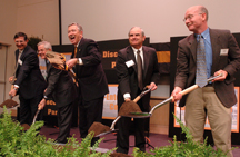 The $10 million, 38,500-square-foot e-Enterprise Center, which will be located south of the Burton D. Morgan Center for Entrepreneurship, is scheduled to be completed by spring 2006. Purdue President Martin C. Jischke said, "The e-Enterprise Center over the past two years has been laying the intellectual and information technology groundwork to connect our researchers working in a variety of disciplines to solve societal problems. We call the largest of the multimillion dollar, multidisciplinary efforts 'super projects.'" Charles R. Rutledge, executive director of Discovery Park, said the e-Enterprise Center represents the interdisciplinary spirit of the park's huge building project on the west side of campus."It's very difficult to answer and address the most important and interesting questions from just one discipline," Rutledge said. "It is helpful to apply the tools of physics and chemistry to probe biological systems and have engineers design equipment, and then you can answer questions you didn't even think of asking before." The new facility will be designed and engineered by the Indianapolis firm Brenner Design. Purdue is funding the building. While the e-Enterprise Center is under construction, its director, Joseph Pekny, a professor of chemical engineering, is already at work with a team of IT specialists and program managers temporarily located in the Vistech Building at the Purdue Research Park. For two years the center has been providing critical help for Purdue researchers, assigning launch teams to quickly perform a variety of functions. The teams, for example, are called upon to create advanced software and databases that are essential for research, Pekny said. "We provide an information technology infrastructure that would by very difficult, or perhaps impossible, for faculty to develop on their own," Pekny said. "Because we provide complex software and database tools, the faculty are free to concentrate on their own work without having to worry about computer issues." Another goal of the center is to provide a meeting place for people of diverse backgrounds to interact and share ideas. "We can bring dozens of faculty to bear on a problem in a strategic and systematic way," Pekny said. "Super projects can develop when we bring researchers from disciplines together or top-down when we look at a large societal issue or problem and focus our interdisciplinary resources on it." Already, several centers and programs are part of the e-Enterprise Center and will occupy space in the new facility: The Regenstrief Center for Healthcare Engineering will direct interdisciplinary research at delivering health care to consumers more efficiently and effectively. The Regenstrief Foundation has provided a three-year, $3 million start-up grant beginning in January. The Purdue center will apply process-engineering principles, such as supply-chain management and just-in-time manufacturing, to health-care delivery, following the flow of information, communication, funds and materials through the system to achieve better results and efficiency. Some initial areas of interdisciplinary inquiry involving researchers from most of Purdue's schools will include improving safety and efficiency of patient care, providing more efficient deployment of physicians, nurses and other health-care personnel, and better coordinating inpatient and outpatient treatment, as well as health communication. The NASA Specialized Center of Research and Training for Advanced Life Support is supported by a $10 million, five-year NASA grant to design a self-sustaining environment for future space colonies. The center includes 24 researchers from Purdue and two historically black universities, Alabama A&M in Normal, Ala., and Howard in Washington, D.C. Also part of the e-Enterprise Center are the Indiana Center for Cultural Exchange, Institute for Advanced Pharmaceutical Technology, Purdue Terrestrial Observatory and the biometrics laboratory in the School of Technology's industrial technology department. The Center for Advanced Manufacturing will be located at the e-Enterprise Center. The manufacturing initiative, announced during the summer, is providing contract applied manufacturing research for existing companies, as well as helping attract new businesses to the state, creating opportunities for companies to launch new products and processes, and helping to alleviate what many refer to as Indiana's "brain drain." John Sullivan, director of the Center for Advanced Manufacturing and professor of aeronautical and astronautical engineering, said, "Joining Purdue's deep resources in manufacturing with Indiana's manufacturers will pay economic dividends for the state. Purdue has a long history of cutting-edge research in manufacturing, and we want to continue and enhance this work and transfer these advances to manufacturers. Job No. 1 at the Center for Advanced Manufacturing is to have Indiana manufacturers understand that we're open for business." Located southwest of State Street and Intramural Drive in West Lafayette, Discovery Park includes the e-Enterprise Center; the Burton D. Morgan Center for Entrepreneurship, which is completed; Bindley Bioscience Center and the Birck Nanotechnology Center, which are under construction; and Discovery Learning Center. The new Biomedical Engineering Building also will be located in Discovery Park. The e-Enterprise Center groundbreaking is part of a 10-day celebration that focuses on ways Purdue is improving education and helping the state of Indiana as part of its strategic plan and $1.3 billion fund-raising campaign. Writer: Mike Lillich, (765) 494-2077, mlillich@purdue.edu Sources: Martin C. Jischke, (765) 494-9708 Charles Rutledge, (765) 494-7766, chipr@purdue.edu Joseph Pekny, (765) 494-3153, pekny@purdue.edu John Sullivan, (765) 494-3344, sulivan@purdue.edu Purdue News Service: (765) 494-2096; purduenews@purdue.edu