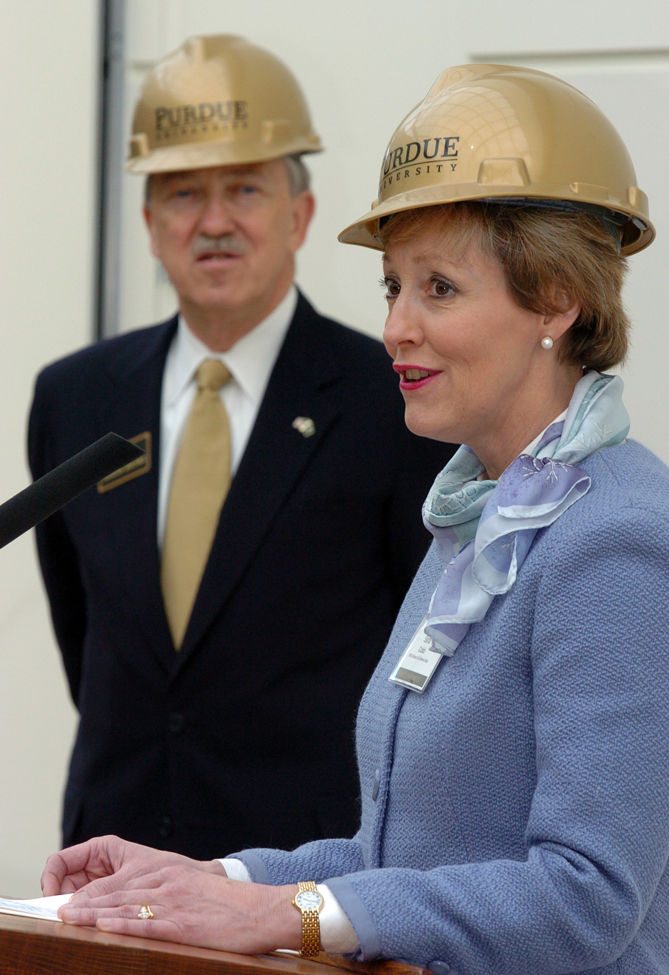 "Finally, we've learned to be responsive, to respond within 24 hours to companies that come to us with a potential project or for a progress update." Rutledge said new Discovery Park centers also could address other large, complex areas of research, such as transportation-distribution-logistics, environmental science and cancer research. The university will request proposals from faculty and fund the most promising ventures within the next one to two years. Jischke has stressed the concept of using public-private partnerships to attract funds and businesses to the state. In addition to the $200 million the original Lilly Endowment gift has attracted, Discovery Park also has been a key factor in Purdue's success in raising more than $1 billion to date in the university's Campaign for Purdue. This fall, the campaign goal was raised from $1.3 billion to $1.5 billion. Discovery Park is Purdue's interdisciplinary research hub that brings the university's scientists, researchers, engineers and management experts together on a project-based basis to make basic discoveries available to advance the Indiana economy and solve societal problems by inventing new products and processes. Also under construction at Discovery Park is a biomedical engineering building. Writer: Mike Lillich, (765) 494-2077, mlillich@purdue.edu Sources: Martin Jischke, (765) 494-9708 Gretchen Wolfram, Lilly Endowment media contact, (317) 916-7304, wolfamg@lei.org Charles O. Rutledge, (765) 494-7766, chipr@purdue.edu Purdue News Service: (765) 494-2096; purduenews@purdue.edu