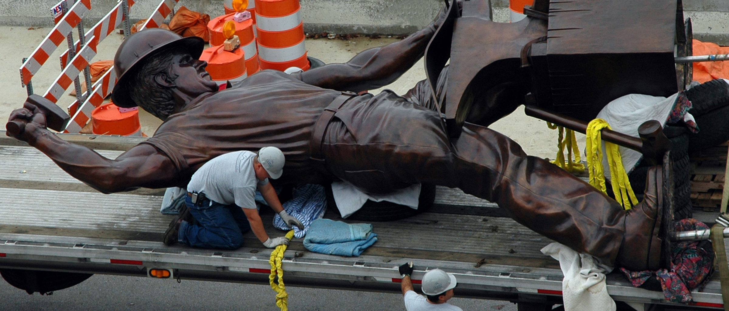 At 8:30 a.m., the Boilermaker Special and a police escort will lead the truck transporting the statue from the Purdue Airport through campus, where the truck will back down University Drive to the installation site. Traffic on University Drive near the site will be blocked by the crane, which will hoist the statue, until approximately 11 a.m. Spectators are welcome to view the procession and installation. Jay Cooperider, associate athletics director, said great effort was put into the final design of the statue. "The statue represents a timeless boilermaker," Cooperider said. "We researched old photographs, records and newspaper articles to find out what real boilermakers wore when they worked in boiler rooms and combined the 19th century notion of a locomotive boilermaker with that of more modern imagery." In 1891, a newspaper headline chided the "burly boilermakers from Purdue" after the football team recorded a 44-0 victory over rival Wabash College. Newspapers picked up on the term, and the Boilermakers quickly became the university's team name.