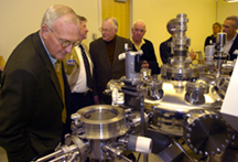 "While the Birck Center has already been very successful, attracting $38 million in funding and resulting in new opportunities and research projects, there is still more to come," said Provost Sally Mason. "The pace of activity is ramping up for Discovery Park in general, but a big operation like this isn't something that reaches its full potential overnight. We expect it to be bigger and better and continue to grow." The $58 million center, a two-floor, 187,000-square-foot facility, involves about 260 faculty and staff members and graduate students from 25 schools and departments across the university. A third level houses air filtration equipment. "The philosophy that we adopted in this center is that we would provide a facility and equipment that are otherwise very difficult for individual faculty members to get on their own," said Richard Schwartz, the center's co-director and a professor of electrical and computer engineering. "This specialized equipment, and being able to work with larger interdisciplinary groups of researchers, is what attracts people to the center. "One of the really unusual aspects of the center is that all of the lab space and all of the equipment is in the shared mode. That means every member of the center has access to any of the equipment." The center contains specialized labs designed to control conditions such as vibration, noise, temperature, humidity and electromagnetic interference from radio waves and other sources. "In particular, the vibration and temperature control are world class in certain laboratories," said James A. Cooper Jr., co-director of the center and a professor of electrical and computer engineering. The center's designers from HDR Inc., a worldwide architectural-engineering firm headquartered in Omaha, Neb., also designed the Advanced Measurement Laboratory at the National Institute of Standards and Technology, in Gaithersburg, Md., which is among the most advanced measurement facilities in the world.