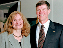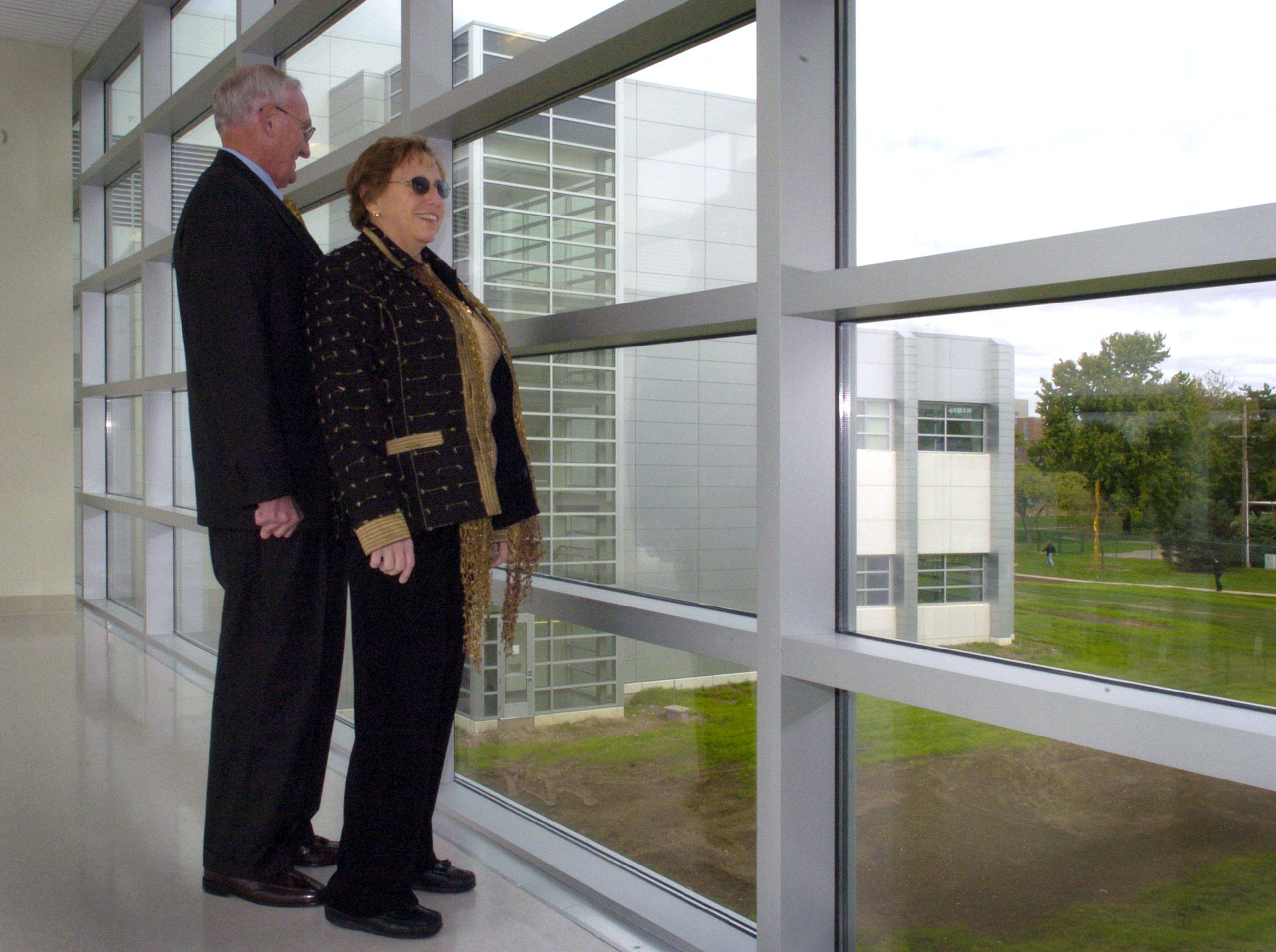 Numerous companies and organizations have expressed interest in using facilities in the center. "Many companies contact us, not only about the Birck Center but also about the recently completed Bindley Bioscience Center and other Discovery Park facilities, because it will take a combination of experts from more than one center working together to solve a particular problem," Adams said. "That's why the Discovery Park concept is so powerful. "Real-world problems involve more than one discipline. A device may contain electronics, plastic polymers, mechanical components, biological molecules and so on. You also need to educate people about new technologies, which can be handled through the Discovery Learning Center, and you have to figure out how to get new technologies into real products, which is the job of the Burton D. Morgan Center for Entrepreneurship." The two existing national centers already housed at Birck are the NASA Institute for Nanoelectronics and Computing, directed by Supriyo Datta, the Thomas Duncan Distinguished Professor of Electrical and Computer Engineering, and the NSF Network for Computational Nanotechnology, directed by Mark Lundstrom, Purdue's Scifres Distinguished Professor of Electrical and Computer Engineering. Having the completed building will boost activities in the nanotech center. "By opening up the new laboratories and research spaces, we are going to be able to do experiments, fabricate devices and materials, make measurements, and so on, that we couldn't do before," Adams said. "Also, because we now have a place to congregate, we are going to be able to bring all these people together faculty, students, staff and visitors which we think will stimulate the intellectual environment and speed up the process of coming up with new ideas." The center contains 12 conference rooms, 45 faculty offices and 15 student offices. "We've already been working together and holding seminars, but research has been going on in about 23 labs across campus, so it's been scattered all over," Schwartz said. "This will allow us to bring people together much more easily and provide better access to equipment. "We have enough space for 150 graduate students, and we already have requests that exceed that, so we've arranged for the Bindley Bioscience Center to house 20 of our graduate students." Bindley is connected to the east side of the Birck Center via a second-floor walkway. "We've co-designed the buildings to make it easier for people in both centers to work together," Schwartz said. "We did this partly because we think that some of the really early payoffs in nanotechnology will be in the nano-bio area, which will involve both engineering and biological sciences." One example of such work is research led by Rashid Bashir, a professor of electrical and computer engineering, aimed at creating devices called "biochip" detectors that combine proteins and other biological molecules with electronic components. To properly design the clean rooms, Purdue enlisted the help of experts from Delphi Electronics & Safety and Eli Lilly and Co. Underscoring the building's unusual design is the fact that architects who specialize in nanotechnology facilities will hold a national conference at the center next February. The Birck Center is named for Michael and Katherine (Kay) Birck of Hinsdale, Ill. The Bircks donated $30 million for the building. He is a Purdue alumnus, a member of the Purdue Board of Trustees and chairman of Tellabs Inc. Kay Birck, a Terre Haute, Ind., native, recently retired as head of nursing at Women's Healthcare of Hinsdale. Purdue alumni Donald and Carol Scifres also donated $10 million to the center, and alumni William B. and Mary Jane Elmore provided $2 million toward the center's William and Mary Jane Elmore Advanced Wireless Concept Validation Laboratory. The dedication is part of a two-week celebration leading up to Purdue's Oct. 15 Homecoming. Events focus on ways Purdue is improving education and helping the state of Indiana as part of the university's strategic plan and $1.5 billion fund-raising campaign. Writer: Emil Venere, (765) 494-4709, venere@purdue.edu Sources: Martin Jischke, (765) 494-9708 Alan Rebar, (765) 496-6625, rebar@purdue.edu Sally Mason, (765) 494-9709, sfmason@purdue.edu James A. Cooper, (765) 494-3514, cooperj@purdue.edu George B. Adams, (765) 494-2698, gba@purdue.edu Richard Schwartz, (765)494-0619, schwartz@purdue.edu Purdue News Service: (765) 494-2096; purduenews@purdue.edu