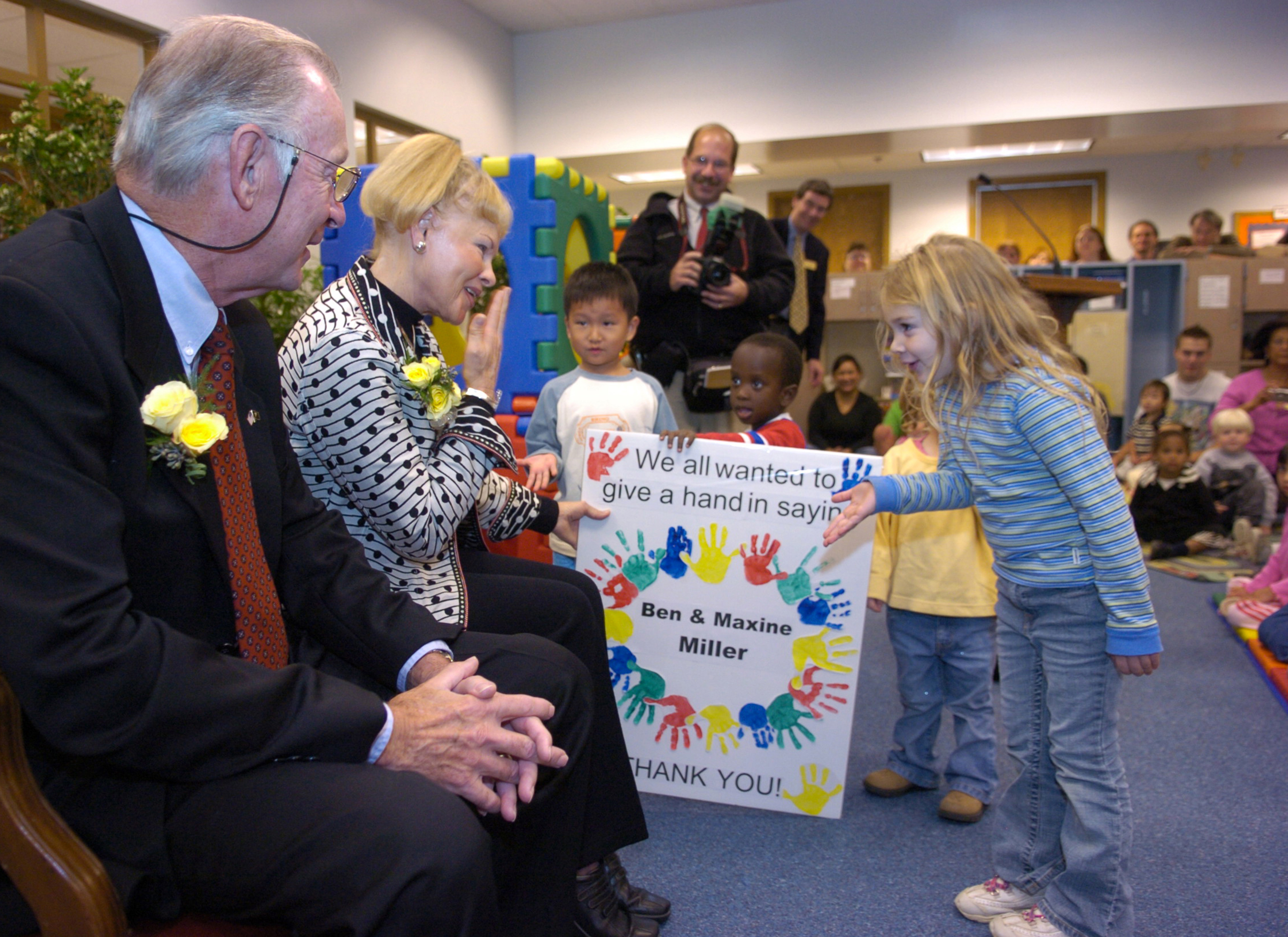 "This is yet another indication of the importance of the College of Consumer and Family Sciences to alumni, and the people who benefit in the end will be the people of Indiana," said President Martin C. Jischke. "Ben and Maxine Miller have shown time and again their commitment to helping Purdue, not only with gifts but also with strong leadership in committees and academic endeavors. These are the people who make up the Purdue family. We are all grateful to them for their leadership and trust." The announcement is part of a two-week celebration leading up to Purdue's Oct. 15 Homecoming. Events focus on ways Purdue is improving education and helping the state of Indiana as part of the university's strategic plan and $1.5 billion fund-raising campaign. The Millers of Lafayette, Ind., gave a leadership gift to the Purdue Child Care Program in the Department of Child Development and Family Studies, which will be renamed the Ben and Maxine Miller Child Learning Center, subject to ratification by the university's board of trustees.
