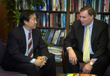 Purdue News Service: (765) 494-2096; purduenews@purdue.edu PHOTO CAPTION: Zhongming Wang, from left, executive dean of Zhejiang University's School of Management in China, and Purdue University's Krannert School Dean Richard Cosier discuss areas of academic cooperation between the two universities. The two signed a letter of intent to engage in cooperative programming in May when Cosier visited Zhejiang University in Hangzhou. Wang visited the Purdue campus Feb. 7. (Purdue News Service photo/David Umberger) A publication-quality photo is available at https://www.purdue.edu/uns/images/+2006/cosier-zhong-ming.jpg