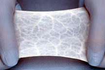 It is being used to cure chronic sores, treat incontinence in women and repair internal organs and hernias. The federal Food and Drug Administration has cleared five applications of its use so far, the most recent coming this month for "full thickness" wounds so severe that they sometimes result in amputation. The material prompts the human body to replace damaged tissues with little or no scarring, recreating the healing efficiency of young children. Purdue University scientists isolated it from layers of tissue called small-intestine submucosa, or SIS, after they discovered more than a decade ago that the small intestine possessed unusual healing properties. "This is not just something that looks promising; this is now proven to work," says Stephen F. Badylak, a senior research scientist at Purdue's Department of Biomedical Engineering, where scientists in the 1980s discovered SIS's healing qualities unexpectedly while looking for ways to make substitute blood vessels. The material has since been developed for patient care by start-up company Cook Biotech Inc., located at the Purdue Research Park in West Lafayette. SIS has been used so far to cure skin wounds and chronic sores, treat urinary incontinence in women, repair internal organs, and save the limbs of people suffering from deep wounds that were previously not treatable. Veterinarians also are using it for numerous types of surgeries, including those that have prevented amputations and healed eye injuries that otherwise would have resulted in blindness. Researchers do not yet know exactly how SIS works, but they do know that it essentially functions as a natural framework for repairing and growing tissue and that it contains numerous proteins and "growth factors" that signal the healing process. "It is basically Mother Nature's scaffold for wound healing," says Badylak, who discovered its unusual characteristics while working with Leslie Geddes, Purdue's Showalter Distinguished Professor Emeritus of Biomedical Engineering. "SIS causes the body to heal more like an infant or a young child would heal, as opposed to an adult." Such healing efficiency nearly eliminates the formation of post-surgical scars, which deform and interfere with the healthy functioning of tissues. "Scars are the bane of all surgeons," he says. Once applied to skin wounds or sutured internally, the material prompts the body to build new tissue, inexplicably replacing the intestine-derived material with new human or animal tissue. Moreover, the replacement tissue matches the tissue that existed originally in that part of the body.