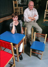 Since schools don't have money to buy furniture, Eckelman and Haviarova designed chairs and desks that can be made with low-tech equipment using local materials. In three articles slated for publication next spring in the Forest Products Journal, the researchers describe the furniture designs they created to economically outfit classrooms. For their work, they'll receive the Woodworkers Helping Others award on Nov. 10 at the Midwest Industrial Woodworking Expo in Grand Rapids, Mich. Stephen Terry, an Indiana high-school teacher who visited Eckelman's laboratory, was so impressed that he took the new designs to schools run by his father in Windsor, Jamaica. Together they hired a group of local carpenters and outfitted a school with new furniture. "The school desks and chairs, Eckelman's design, are deeply appreciated by the entire community. One of the most positive factors was that the furniture was so inexpensive," says Jack Terry, supervisor of the Christ Community Churches of Jamaica Schools. "The Jamaican carpenters who watched and assisted with this project were amazed at how quickly the desks and chairs could be assembled. All of our future schools will use this type of design." Eckelman's furniture project started when Costa Rican officials asked for help after estimating they faced a shortage of about 100,000 school chairs and desks. The chairs and tables had to be very sturdy, Eckelman says, to stand up to heavy use in the tropical climate. He estimates that most local furniture lasts only one to two years. Joints fail; plywood layers separate; lost screws cannot be replaced. Where classrooms already had furniture, local teachers wanted new chairs and desks that looked like the old ones just built better. They could only afford a few new pieces at a time and didn't want students with new chairs to feel favored. As the researchers looked for ways to improve existing designs, they saw that joint failure was a major reason for relegating chairs and desks to the scrap heap. The problem was the rectangular, mortise and tenon joint, in which a peg-like tenon fits in a hole called a mortise. Traditionally, local craftsmen chopped rectangular holes for mortises in wooden uprights, then hewed the ends of side bars (called stretchers) into tenons to fit the holes. The fits were never exact, and joints pulled apart, or tenons broke. That's when Eckelman took a tip from Shaker furniture makers: He decided to make round mortises and tenons just as Shakers had. But he still needed a way to standardize the pieces. "We needed a design that worked without quality control because it's just not there," Eckelman says. After studying Costa Rican resources, he designed a simple machine to manufacture a precise fit for each joint. Eckelman attached a deep hole saw to a simple electric motor and used that to drill tenons with exact, standard diameters. To create a matching, round mortise, he used a drill bit that fit on the same motor. Eckelman drilled the mortise slightly smaller than the tenon, then dried the piece with the tenon until it fits into the mortise hole. When the tenon swells in the moist tropical air, it creates a tight joint. Glue makes the joint even stronger, but Eckelman says it isn't necessary. The entire device cost about $50 U.S., Eckelman says. Meanwhile, Haviarova used Eckelman's joint design as she sought out and created wooden test furniture from native Costa Rican wood species. She used computer-aided engineering software the same type used to design aircraft to determine the optimum size of the mortise and tenon and to design the strongest possible furniture using the most economical cuts of wood. "The material we used was local," Haviarova says. "We made use of what would otherwise be waste material. We tested thinnings from timber plantations and unusable pieces from pallet decking. Local schools can get similar wood at reasonable prices." Haviarova designed laminated wood, solid wood and bent wood furniture using simple equipment that is readily available in developing countries. Then she tested her designs using methods developed by the American Library Association, and her furniture designs and Eckelman's joints more than passed. "Now we're working with the Institute of Technology in Costa Rica to test these in two schools," Eckelman says. "They'll build furniture locally and use it there." Sources: Carl Eckelman, (765) 494-3640, carle@fnr.purdue.edu Eva Haviarova, (765) 447-5811 ehaviar@fnr.purdue.edu Writer: Rebecca J. Goetz, (765) 494-0461, rjg@aes.purdue.edu Other sources: Stephen Terry, (317) 594.5858 ext. 677, oso@excelonline.com Jack Terry, jterry@cwjamaica.com Related Web sites: PHOTO CAPTION Purdue University wood scientist Carl Eckelman (right) and graduate student Eva Haviarova are working on a project to provide cheap, sturdy school furniture for developing countries. A publication-quality photograph is available at the News Service Web site and at the ftp site. Photo ID: Eckelman.furniture