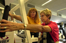 Probably not. But it's a common scenario at Purdue University's A.H. Ismail Fitness and Nutrition Research and Education Center, and one that Michael Flynn would like to see duplicated in exercise facilities around the country. "Our research, and that of others, has shown that strength training can have a remarkable impact on the lives of seniors," says Flynn, a professor in the department of Health, Kinesiology and Leisure Studies and director of the Max E. Wastl Human Performance Laboratory at Purdue. "There are documented cases of individuals who required a cane or a walker to get around, but after strength training they no longer needed those items for mobility." Flynn began putting senior women in the weight room at the University of Toledo while researching the impact of exercise on the immune system of endurance athletes. "It's been reported that excessive training or over-training can suppress post-exercise immune responses, and it occurred to us that weight training which we thought would be a fairly strenuous and novel activity for senior women might elicit some of the same changes we had observed in endurance athletes," Flynn explains. The study, which was funded by the American Association of Retired Persons and published in the Journal of Applied Physiology, monitored 29 women aged 69 to 84. Half of them were put on a weekly strength training program while the 14-member control group did not change their activity levels. After 10 weeks, Flynn found no detectable change in selected indexes of immune system function for any of the strength trainers. What was more surprising was the amount of strength gained and the impact it had on mobility. "The subjective reports from the participants were quite remarkable," Flynn says. "They reported being able to do things that they couldn't do before, and objectively their increases in strength ranged from 50 percent to more than 600 percent in one of our subjects. The average increase was about 150 percent, which means these women were tripling the amount of weight they were able to lift in the course of 10 weeks." Flynn and doctoral student Melody Phillips of Fort Worth, Texas, are currently testing senior women for a follow-up study at Purdue which will look specifically at the impact of resistance training on a blood chemical that is known to influence bone cell function. But in the future, Flynn hopes it won't take a research study to get seniors of both sexes into the weight room. "Strength training as an exercise activity declines steadily through adulthood, and the most recent statistics available from the Centers for Disease Control and Prevention in Atlanta show that by the age of 75 few people are involved in resistance training," Flynn says. "This is despite a growing body of evidence that strength training can significantly improve the quality of seniors' lives, as well as lengthen the amount of time a person can function independently and perform all the tasks we tend to take for granted." So what will it take to get seniors into the weight room? Flynn says education and accessibility are good places to start. "Seniors need to know about the benefits of strength training and that it doesn't take a lot of weight to get started," Flynn says. "The important thing is to increase the amount lifted over time. Our research subjects usually began the program with very light weights, but their progression to heavier weights was quite dramatic." Making weight rooms more "senior friendly" is the other half of the equation. "The atmosphere in many exercise facilities tends to be youthful and, in some cases, testosterone driven," Flynn admits. "Family-oriented recreation centers like the YMCA and YWCA tend to have more programs for people of all ages, but the weight room is not nearly as likely to be used by seniors as a stretch class or the swimming pool." Flynn adds that in one respect, seniors are just like everyone else when it comes to exercise. "We all need to be motivated to do it, and it helps to have an exercise buddy someone to talk with between sets," Flynn explains. "It's easier to get to the gym when you know someone is expecting to meet you there." Source: Michael Flynn, (765) 496-3329, mickflyn@purdue.edu Writer: Sharon A. Bowker, (765) 494-9723, sbowker@purdue.edu Purdue News Service: (765) 494-2096; purduenews@purdue.edu PHOTO CAPTION: