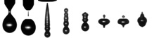 This frame shows a set of images of a drop as it emerges from a nozzle. This not only shows the large primary drop that is desirable, but also the smaller, unwanted satellite drop that almost always occurs in ink jet printing.(Purdue News Service Photos courtesy of Osman Basaran)