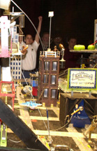 "None of the team members have ever visited New York City," said Eric Gossman, member of the winning team and a senior mechanical engineering technology major from Elkhart, Ind. "But we had a brainstorming session in late November, and we all decided that a New York theme would be fun." The group's machine, named "New York and the Big Apple," was among two of the five contraptions entered in the contest to complete the task without human intervention. All entires were required to finish the job using at least 20 steps and within a time limit. The winning machine used more than 40 steps to win the first-place trophy, $250 and a full-size refrigerator from the contest's corporate sponsor, General Electric. The team also earned the right to represent Purdue in the national competition. The contest honors the late cartoonist Rube Goldberg, who specialized in drawing whimsical, complicated machines to perform very simple tasks. The student-built machines were judged on completion of the task, creativity, the number of steps involved and how well they embraced the Rube Goldberg spirit. The "New York and the Big Apple" machine used items such as a golf ball painted like a Harlem Globetrotters basketball that bounced from a trampoline to a basketball hoop, a figure of King Kong climbing the Empire State Building, a pool ball rolling across the Brooklyn Bridge and a jet flying out of LaGuardia Airport. Music, including the Globetrotters theme, "New York, New York," "The Heart of Rock and Roll" and "Arthur's Theme," was timed to accompany the machine's progress. The winning team dedicated more than 700 hours since November working on the machine. Gossman said the most difficult part of creating the winning entry was dreaming up the steps. "I always get caught up, however, when the fountain turns on in Central Park," he said as he sat watching the machine's second run on the large video screen in Purdue's Elliott Hall of Music. "It's hard to see but, thankfully, I can always hear the motor." The national contest will be at West Lafayette High School. Last year teams from the University of Texas at Austin, the University of Toledo, Northern Illinois University, Oakland University, Marquette University and Northwestern University competed. Previous contests have been featured on "Late Night With David Letterman," CBS' "This Morning," ABC's "Good Morning America," NBC's "Today," Newton's Apple" and CNN. CONTACTS: Fernando Cordero, contest chairman, (765) 743-2623, fcordero@purdue.edu; Eric Gossman, SME team member, (765) 464-3437. NOTE TO JOURNALISTS: Video b-roll of the local Rube Goldberg contest and previous national contests is available. Contact Jenny Pratt at the Purdue News Service, (765) 494-2079, jmpratt@purdue.edu.