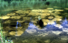 PHOTO CAPTION: Male freshwater fish, such as these sunfish, guard nests (the light-colored circles) of their eggs against predators and other males. New genetic information by Purdue Assistant Professor Andrew DeWoody reveals that the fish are willing to eat some of their own eggs in order to survive while guarding the nest. (Purdue Agricultural Communications Service Photo donated by Dean Fletcher, Savannah River Ecology Laboratory.)