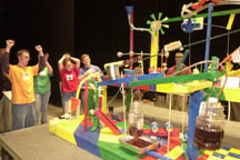 Drawing inspiration collected from trips to science museums and watching the Learning Channel, the 10-member team hoisted the U.S. flag over a simulated mini-Martian landscape to the strains of "Thus Spake Zarathustra" and Lenny Kravitz's "Fly Away." "Rube is life," said mission "captain" Shawn S. Jordan, a senior majoring in computer engineering from Fort Wayne, Ind., as he described the estimated hundreds of man-hours it took to complete the project. Brainstorming began in September, the four-year Rube veteran said, and the team worked about 10 hours every weekend. The group's "Mission to Mars" machine was among eight team contraptions entered in the local contest to complete this year's task to secure, raise and wave an American flag without human intervention. Machines had to complete the task using at least 20 steps and within a time limit. The Society of Professional Engineers' machine finished the job in 50 steps to win the first-place trophy, $250 and a chance to defend Purdue's national title in April. The national contest also will be in West Lafayette. The contest honors the late cartoonist Rube Goldberg, who specialized in drawing whimsical, complicated machines to perform very simple tasks. Student-built machines are judged on completion of the task, creativity, the number of steps involved and how well they embrace the Rube Goldberg spirit. The "Mission to Mars" machine used items such as a rocket-activated pump, a bicycle-crank arm that launched an air rocket and a teeter-totter docking with an International Space Station. Steps incorporating a water-screw Martian aqueduct and a baking soda-and-vinegar volcano, a little Martian landrover and yodeling astronaut triggered a sequence of events that accomplished the mission to raise and wave the flag. In addition to Jordan, the winning team members were: Corinne Catapano, of Roselle, Ill., and Christina Peterson of Cypress, Texas, both seniors in interdisciplinary engineering; civil engineering majors Mark Frossard, a junior from Anderson, Ind., and Devin Keeler, a sophomore from Randolph, N.J.; computer engineering majors James Wert Jr., a junior from Pepper Pike, Ohio, and Anthony Young, a senior from Roanoke, Ind.; electrical engineering majors Andrew Mehl, a sophomore from Goshen, Ind., and Benjamin Rinzel, a junior from Zionsville, Ind.; and Kevin Hollingsworth, a freshman in aeronautical engineering, also from Zionsville.