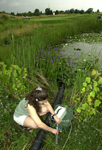 A study also has revealed that the constructed wetlands' efficacy in enhancing water quality improves as the system ages, according to Purdue researchers. Their findings could provide solutions for protection of similar areas by using urban golf courses. The cleanup occurs when microscopic organisms primarily bacteria wetland plants, sediments and golf course grass trap and use much of the residue that otherwise might harm environmentally sensitive areas, the researchers said. "This is an ongoing study of how created wetlands on a golf course can filter water from commercial and residential areas to protect the environment," said Zac Reicher, Purdue Department of Agronomy turf specialist. The five-year water monitoring project, begun in 1998, uses three wetland cells (ponds) incorporated into the renovated Pete Dye-designed golf course. The researchers wanted to determine whether constructed wetlands on a golf course could substantially improve water quality by reducing or even eradicating chemicals such as atrazine, chloride, nitrogen nitrate, ammonia nitrogen, organic carbon, phosphorus, aluminum, iron, potassium, manganese and various solids before the water entered natural waterways. In this study, the recovering natural wetland is West Lafayette's Celery Bog bordering the Kampen Course, part of Purdue's Birck Boilermaker Golf Complex. "We already knew that proper use of fertilizers and pesticides on golf courses does not add any chemicals to surface or ground water," Reicher said. "In fact, the grass itself actually will use or trap most of the nutrients and chemicals contained in runoff from adjacent areas." The tracts from which runoff flows into the golf course wetland system includes not only the golf course but also two residential highways, a motel parking lot, a gas station and 200 homes. "This system has allowed us to integrate golf aesthetics with the protection of natural wetland systems," said Ron Turco, soil microbiologist and director of the Purdue Environmental Sciences and Engineering Institute. "Although we knew that both wetlands and golf courses can improve the quality of runoff water, studying how they work together will help us incorporate constructed wetlands into existing settings and to optimize their use." Design of the wetlands is important in maintaining plant life and microbes that remove chemicals from the water, Turco said. Currently most wetlands are designed for aesthetics rather than to optimize protection of the environment. In order to understand the water flow and chemical behavior in the wetland, the researchers use two types of dyes that are harmless to plants and animals to track how fast water moves through the wetland system. "Through this research, we have discovered that we need to vary both the speed at which the water moves through and also the water's depth," said Amanda Lopez , a research team member and agronomy graduate student. "It's good to have a mixture of deep and shallow water so that we have a varied population of microbes, thus improving the efficiency of the constructed wetlands." The three constructed wetland ponds, along with a water retention pond, are situated so they will catch most of the runoff water from the golf course and the adjacent urban area. Water travels through the constructed wetlands to the retention pond and then is recycled for golf course irrigation before draining into Celery Bog. Prior to the course renovation, most of the water went directly into the natural wetland without benefit of cleanup by the constructed wetlands. The researchers use six water quality monitors, or water samplers, located along the wetland system. The first is at the inlet to the golf course's east end, which monitors content of water entering the course. The sixth monitor, at the outlet of the course's northwest end, shows the amount and types of chemicals still in the water when it enters Celery Bog. These water samplers measure oxygen, conductivity of chemicals, temperature and pH level. The study has yielded some surprising information, including showing that oil and grease are almost non-existent in water entering the constructed wetlands despite the adjacent highways and parking lot. In addition, no heavy metals, such as mercury or lead, have been detected. The latest chemical analyses of the runoff water exiting the golf course offer a positive environmental outlook: No unusually high levels of any potential pollutants were detected. Some aluminum, magnesium and silicon were occasionally recorded, but that was most likely erosion from bunker sand, researchers said. The amount and type of pollutant varies depending on the season of the year, with the wetlands' cleaning of the water being more efficient during the spring and summer, the researchers said. During storms, the amount of chemicals also can differ. For instance, during storms in June 1998 and April 2001, atrazine was detected in water entering the course. However, the number of contaminants found in the runoff water exiting the golf course has steadily declined as the constructed wetlands system has matured. "Wetlands can be more than just a challenge to golfers," Reicher said. "They also can benefit people and the environment. Use of wetlands in conjunction with golf courses can make those 18 fairways and greens good neighbors by cleaning up the water." The U.S. Golf Association and the U.S. Environmental Protection Agency are providing funding for this research. NOTE TO JOURNALISTS: A video news release with sound bites and B-roll is available from the Agricultural Communication Service. Writer: Susan A. Steeves, (765) 496-7481, ssteeves@purdue.edu Sources: Zachary Reicher, (765) 494-9737, zreicher@purdue.edu Ron Turco, (765) 494-8077, rturco@purdue.edu Ag Communications: (765) 494-2722; Beth Forbes, bforbes@aes.purdue.edu; https://www.agriculture.purdue.edu/AgComm/public/agnews/ Related Web sites: Environmental Protection Agency, America's Wetlands PHOTO CAPTIO