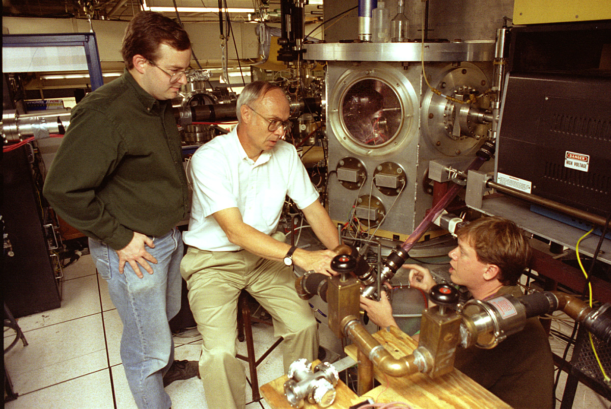 The key to achieving such behavior at room temperature is to make the clusters extremely small, Andres says. Roughly 250,000 clusters, lined up end to end in a single line, could fit across the head of a straight pin, says Clifford Kubiak, professor of chemistry and a member of the Purdue research team. Each gold cluster in the LCN is 3.7 nanometers in diameter. A nanometer is one-billionth of a meter.